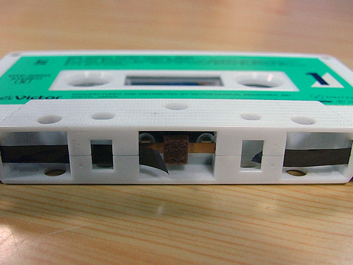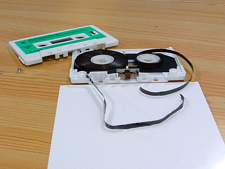 ラジカセに入れて再生しようとしたら音声がふにゃふにゃとなったため、慌ててイジェクトしたらテープが切れてしまったとのこと。
