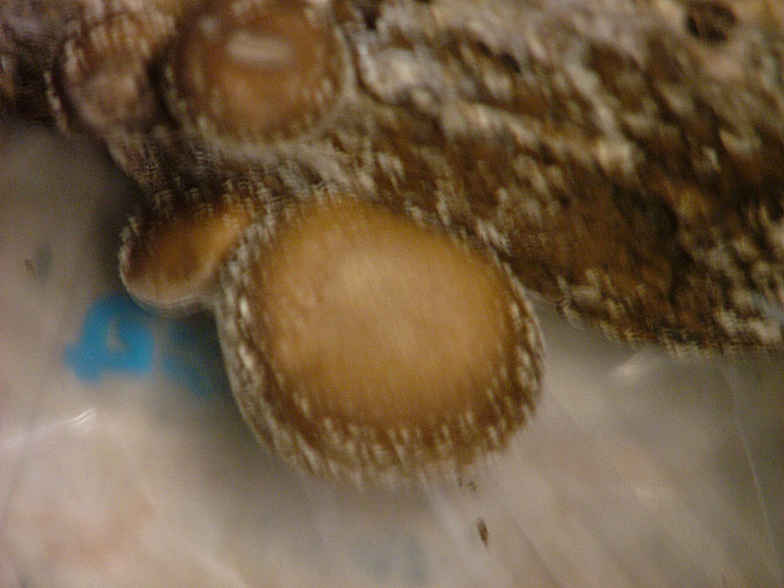 スタジオ入り口に置きっぱなしでしばらく手ぶっていたら、何と気が付けば古い菌床からシイタケが生えていた。