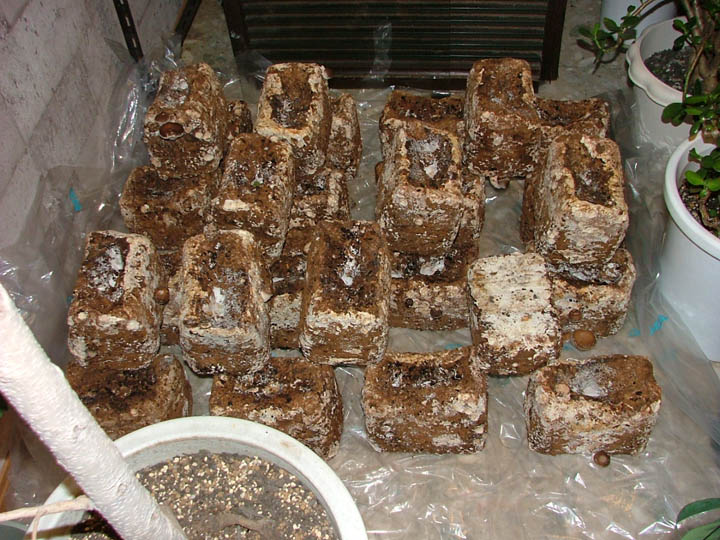 先輩から古くなったシイタケの菌床をもらった。