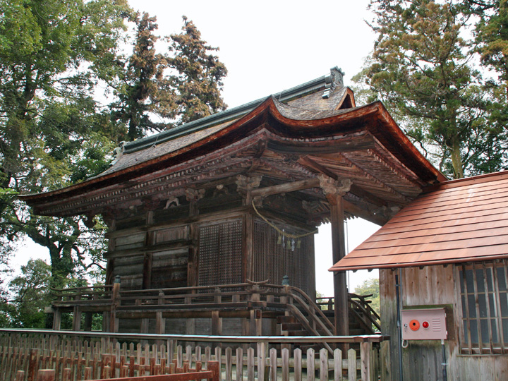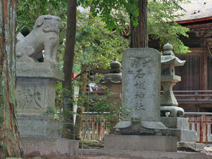 山頂には駐車場があり、そのすぐ横に石城神社の山門がある。