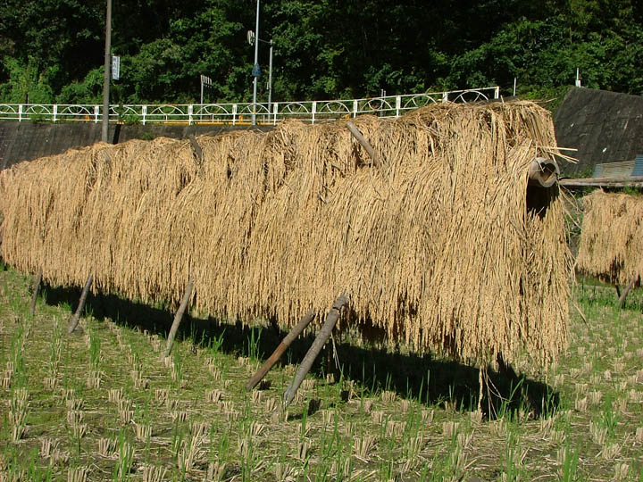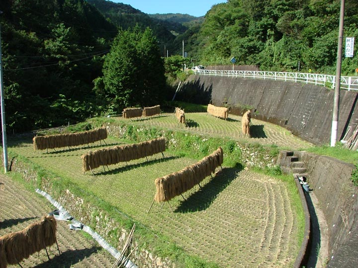 山間の狭い田んぼでは機械がなかなか入り辛い。
