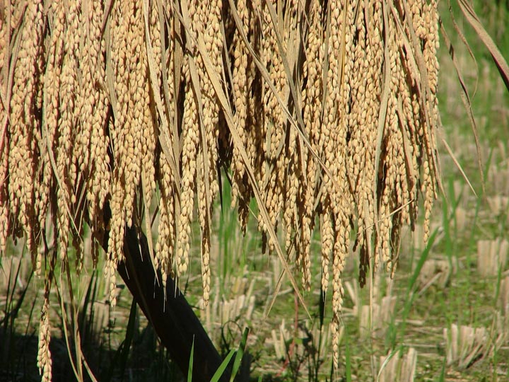 異常気象の中で、お年寄りが丹精込め作られた黄金色の稲穂だ。