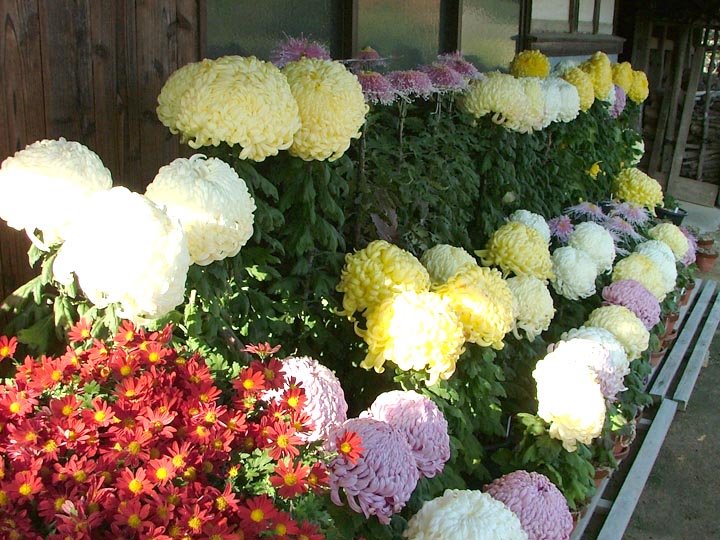 散歩の途中で菊作りの名人のお宅にお邪魔した。