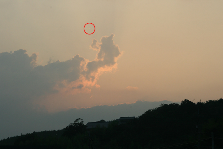 夕陽の撮影をしようとレンズを西の空へ向けてシャッターを切っていたら、ファインダーの中に光を反射しながら高速で移動する物体が飛び込んできた。