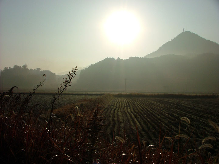 太陽が昇ると、霧が大空へ吸い込まれて行く。