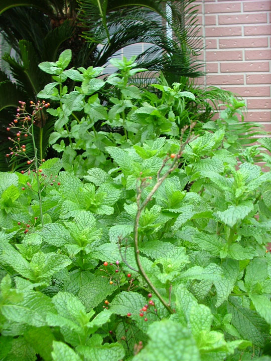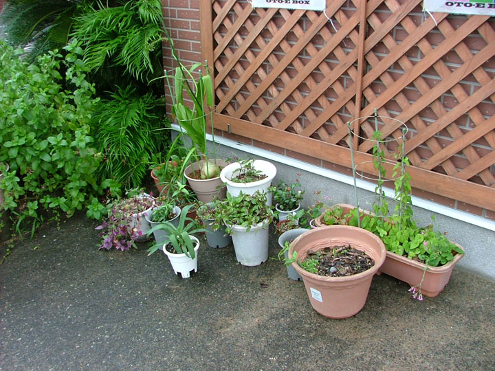スタジオの前の小さな花壇には、梅雨に入りハーブが元気に成長してきた。