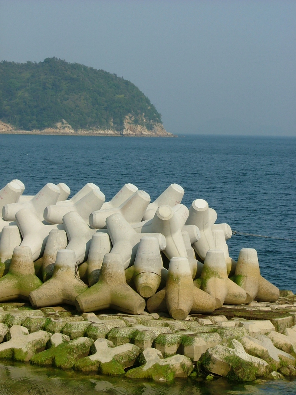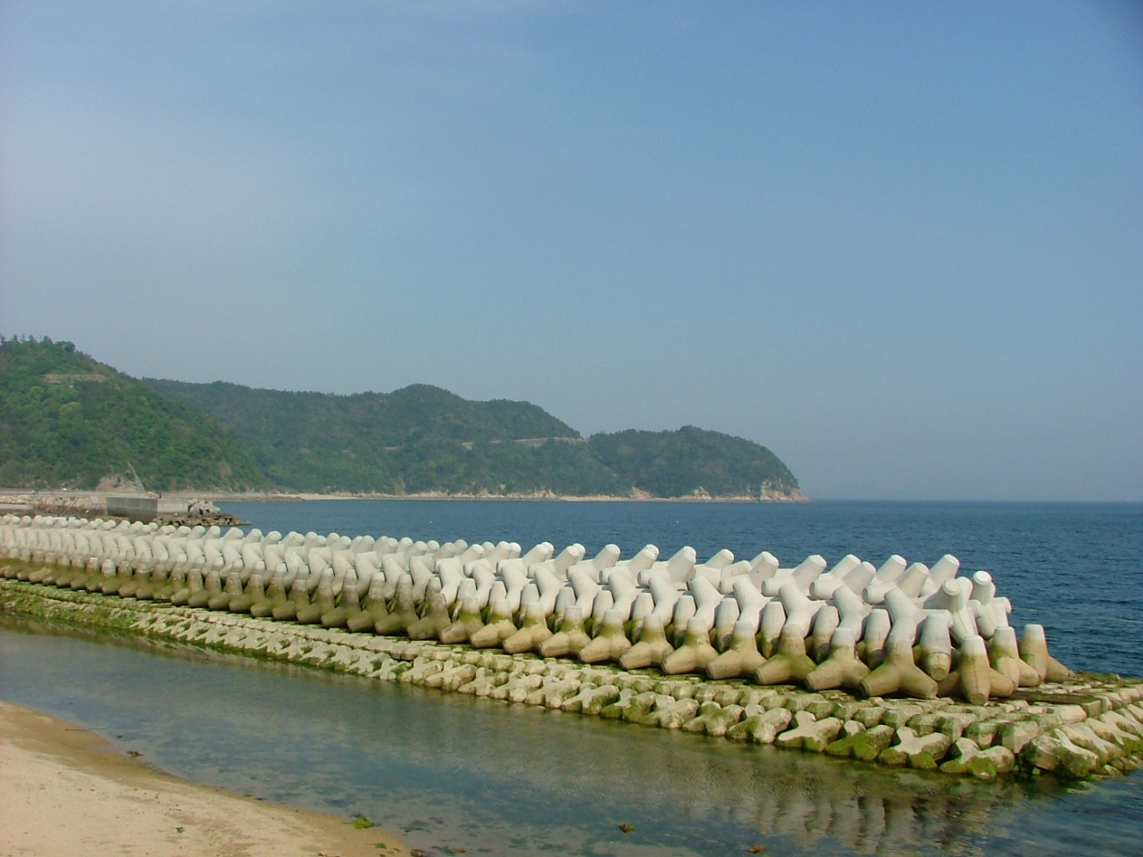 昔は遠くまで見渡せたのだが、最近は高波被害、特に台風の被害が深刻になったため浜辺のすぐ目の前でテトラポットの防波堤工事が数年前から始まっている。