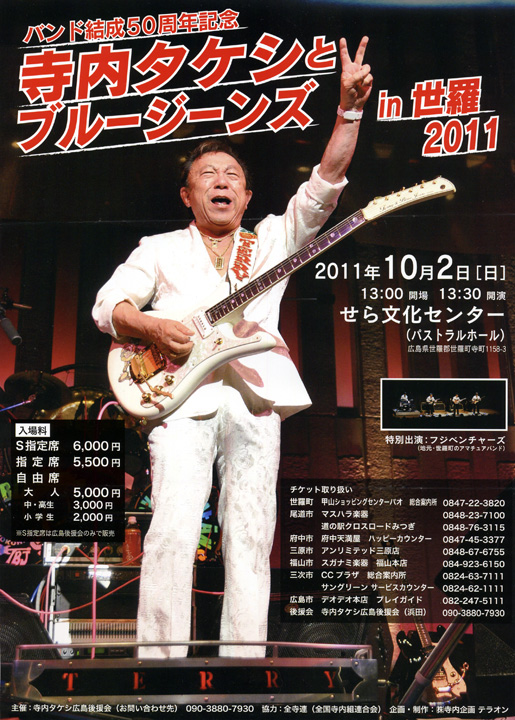 昨日、広島県世羅町で寺内タケシ&ブルージーンズのコンサートがあり、後援会用のV収録も無事終えた